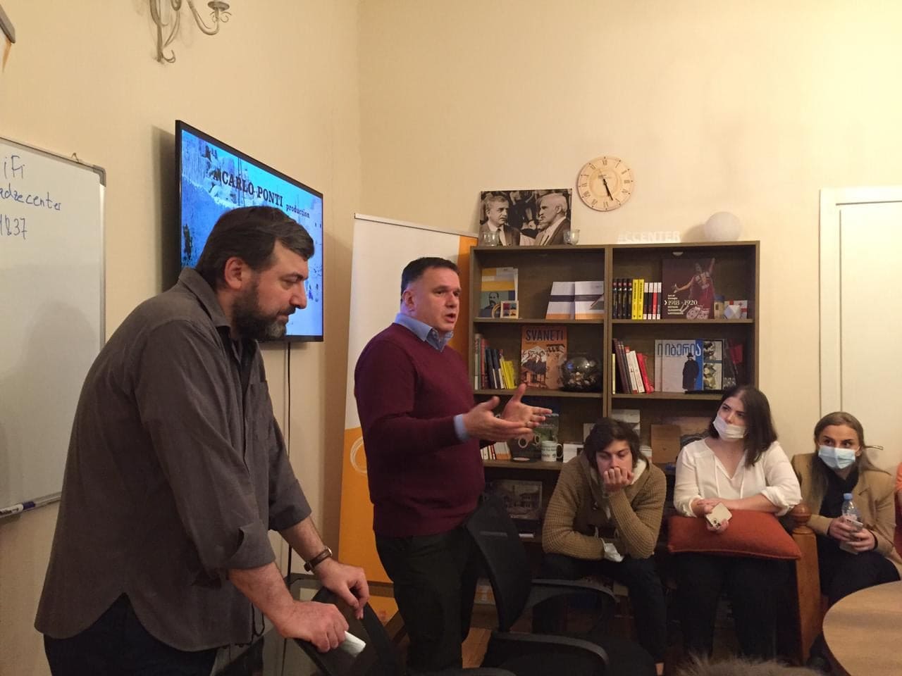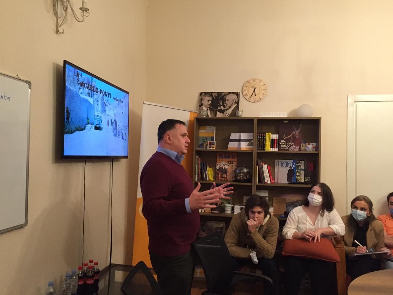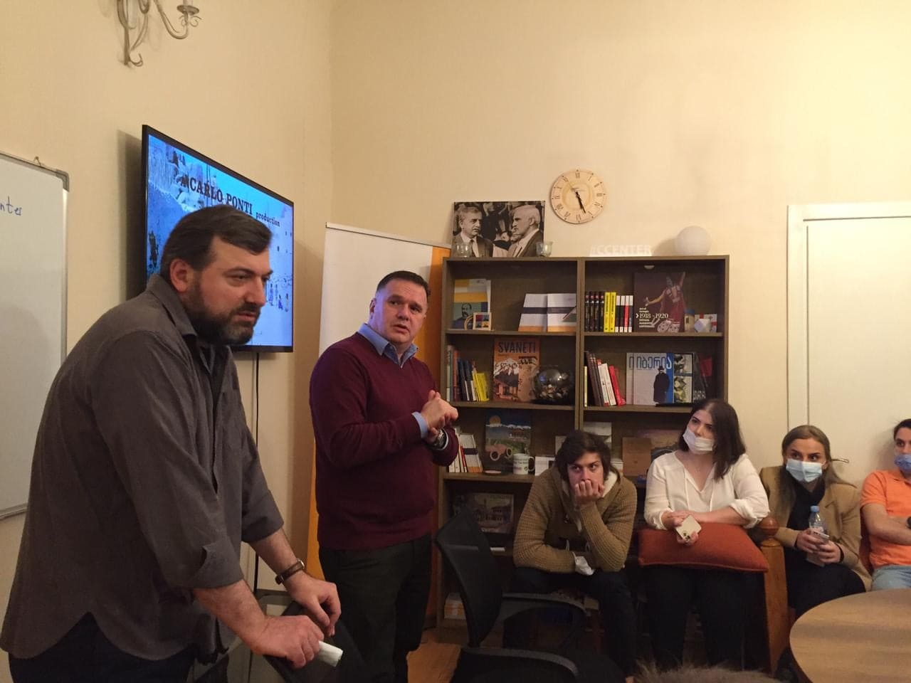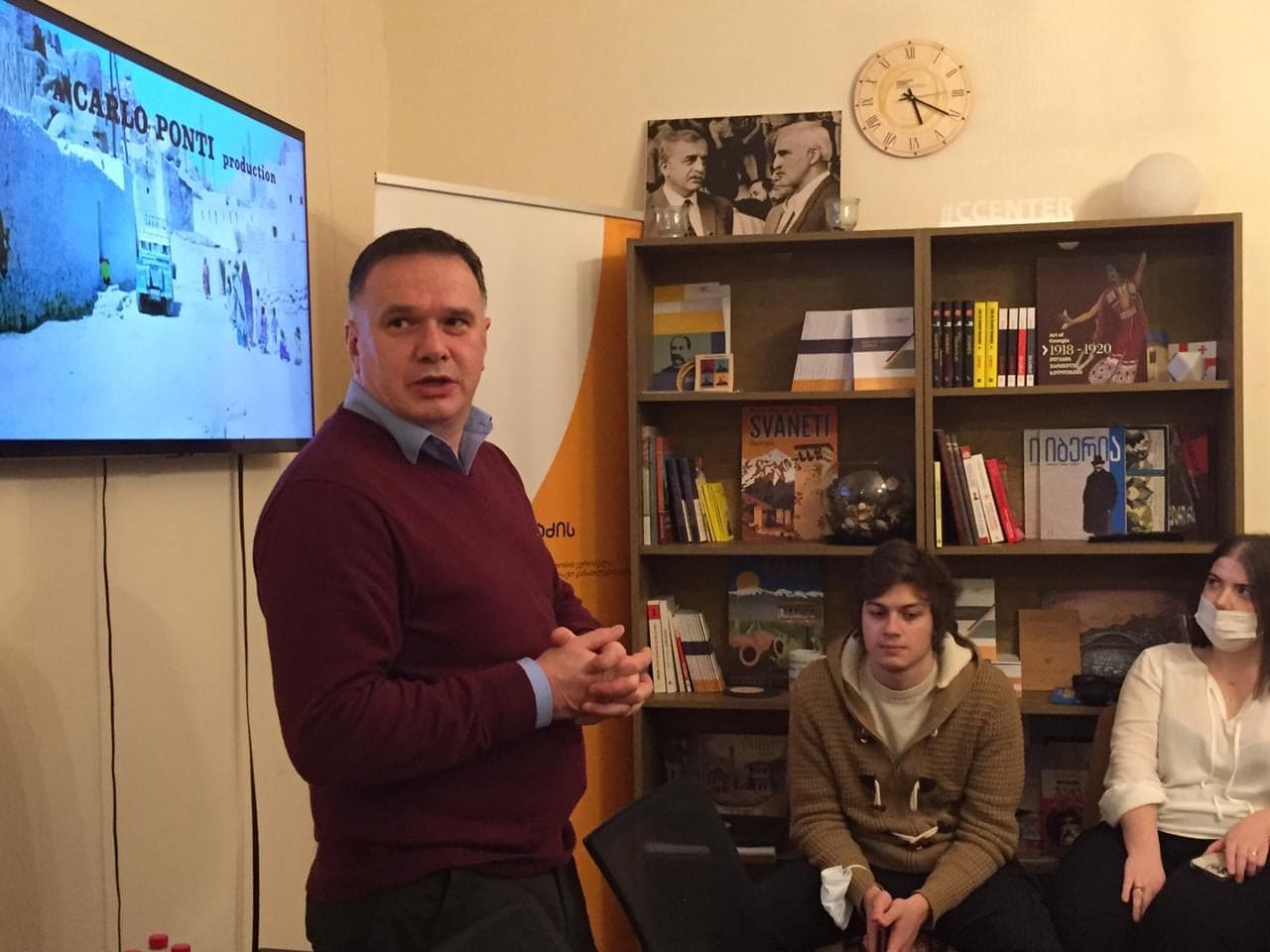 On November 5, another movie screening and discussion was held in the office of the Chavchavadze Center. Michelangelo Antonioni's 1975 classic “The Passenger” was shown. The screening, which was attended by 25 students from various universities of Tbilisi (primarily, UG and CU), was hosted by Gia Japaridze, the Center’s senior fellow and Zaza Bibilashvili, the Center’s founder. Professor Nodar Ladaria, a writer and medievalist, was our guest speaker for the event.