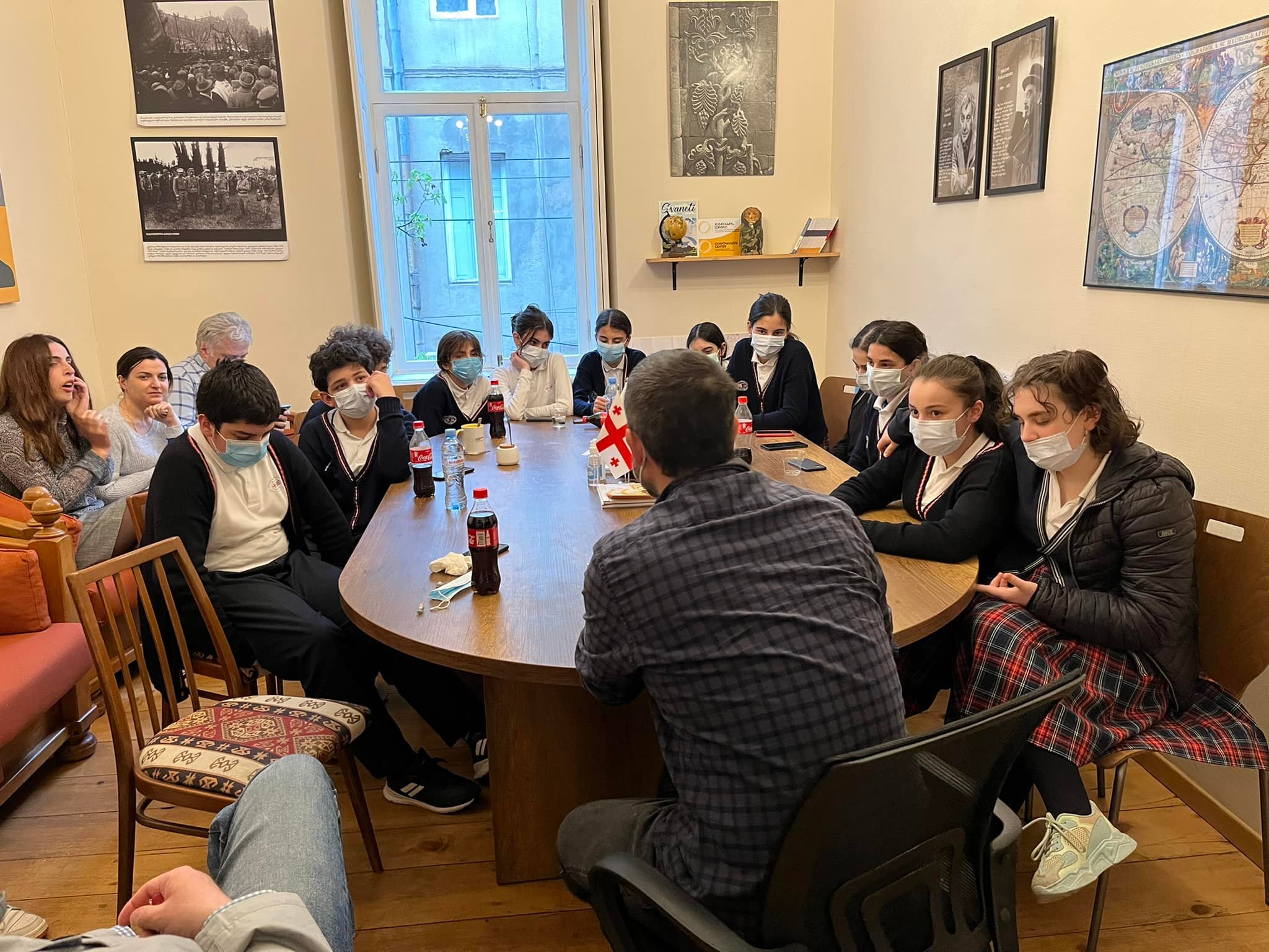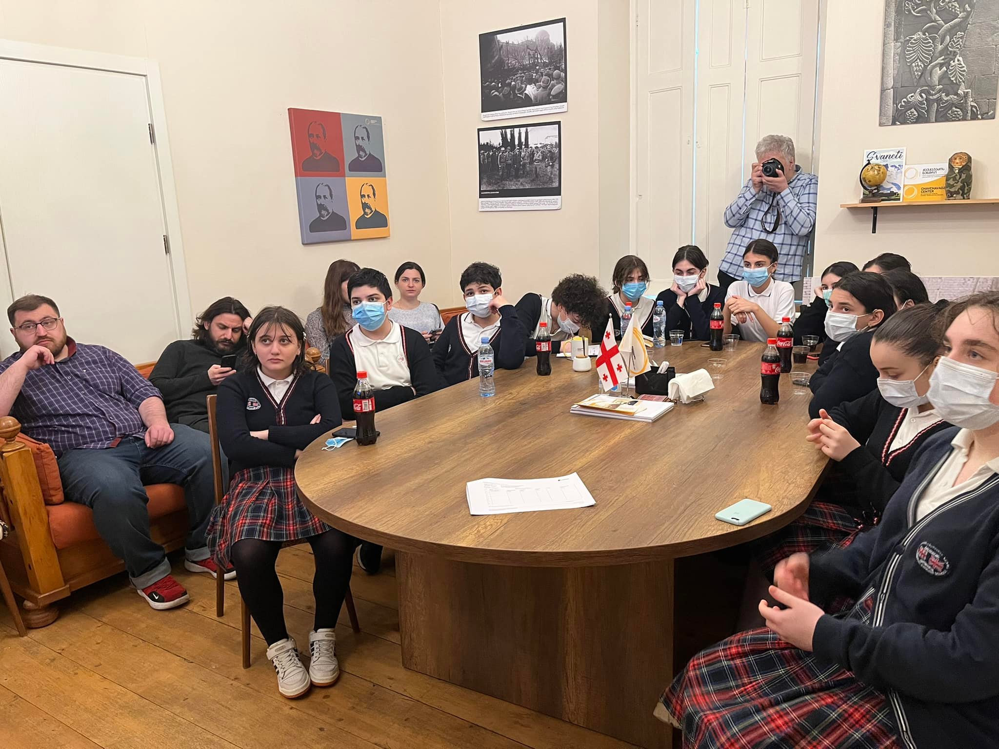 On April 8, another movie screening and discussion was held in the Chavchavadze Center. This time Peter Weir's 1998 film "The Truman Show" was shown. The screening was attended by 8th graders and teachers from Britannica's "Readers Club". Our guest speaker for the event was a philosopher Levan Gambashidze. At the end of the screening a discussion ensued, which was moderated by Gia Japaridze.