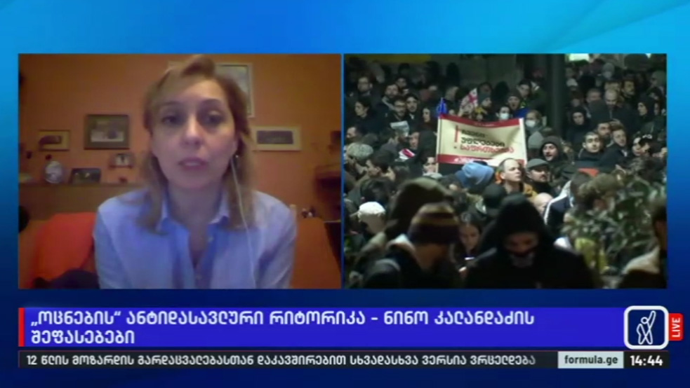 Nino Kalandadze on the air of "Palitra News", in the program "Newsroom", March 14, 2023.