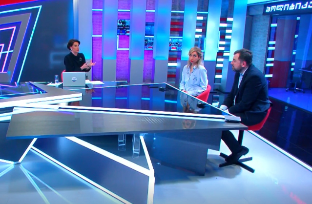Nino Kalandadze and Gia Japaridze on the air of "TV Pirveli", February 20, 2023.