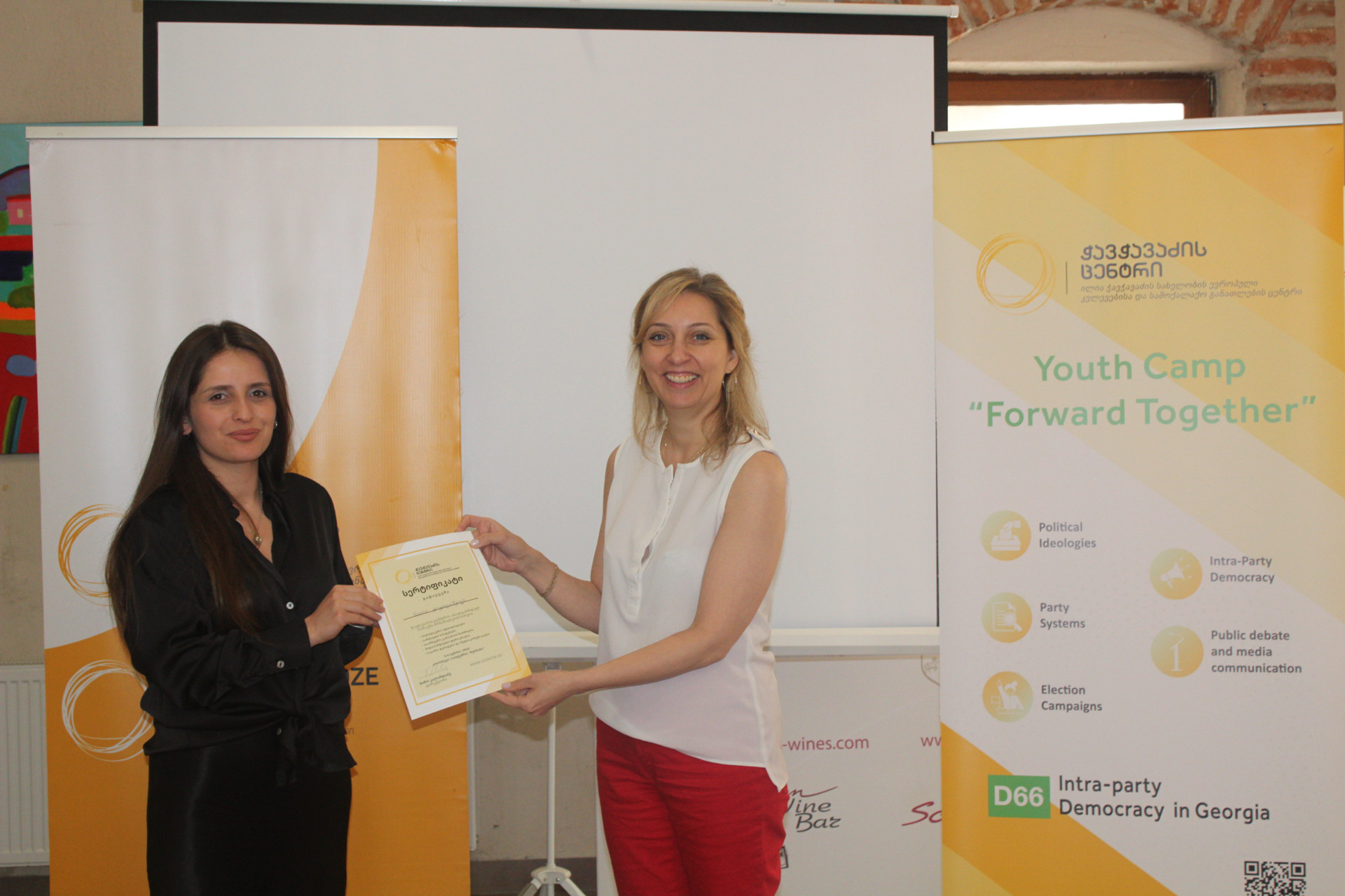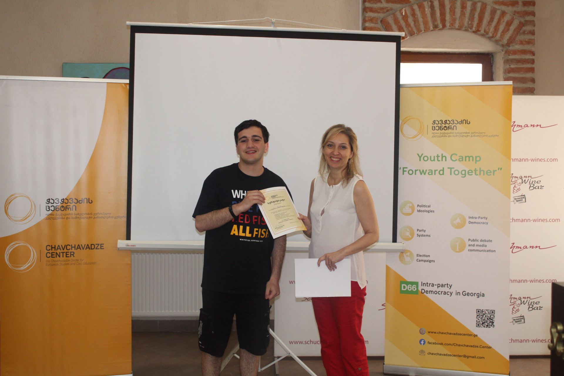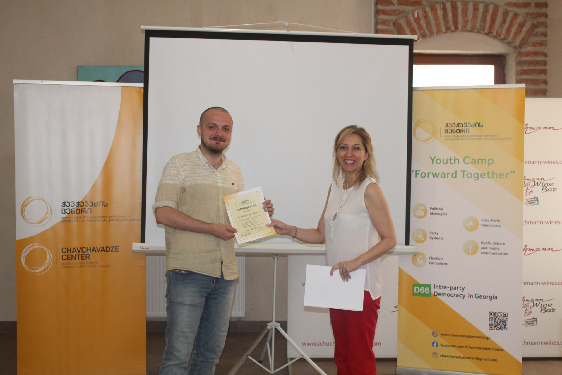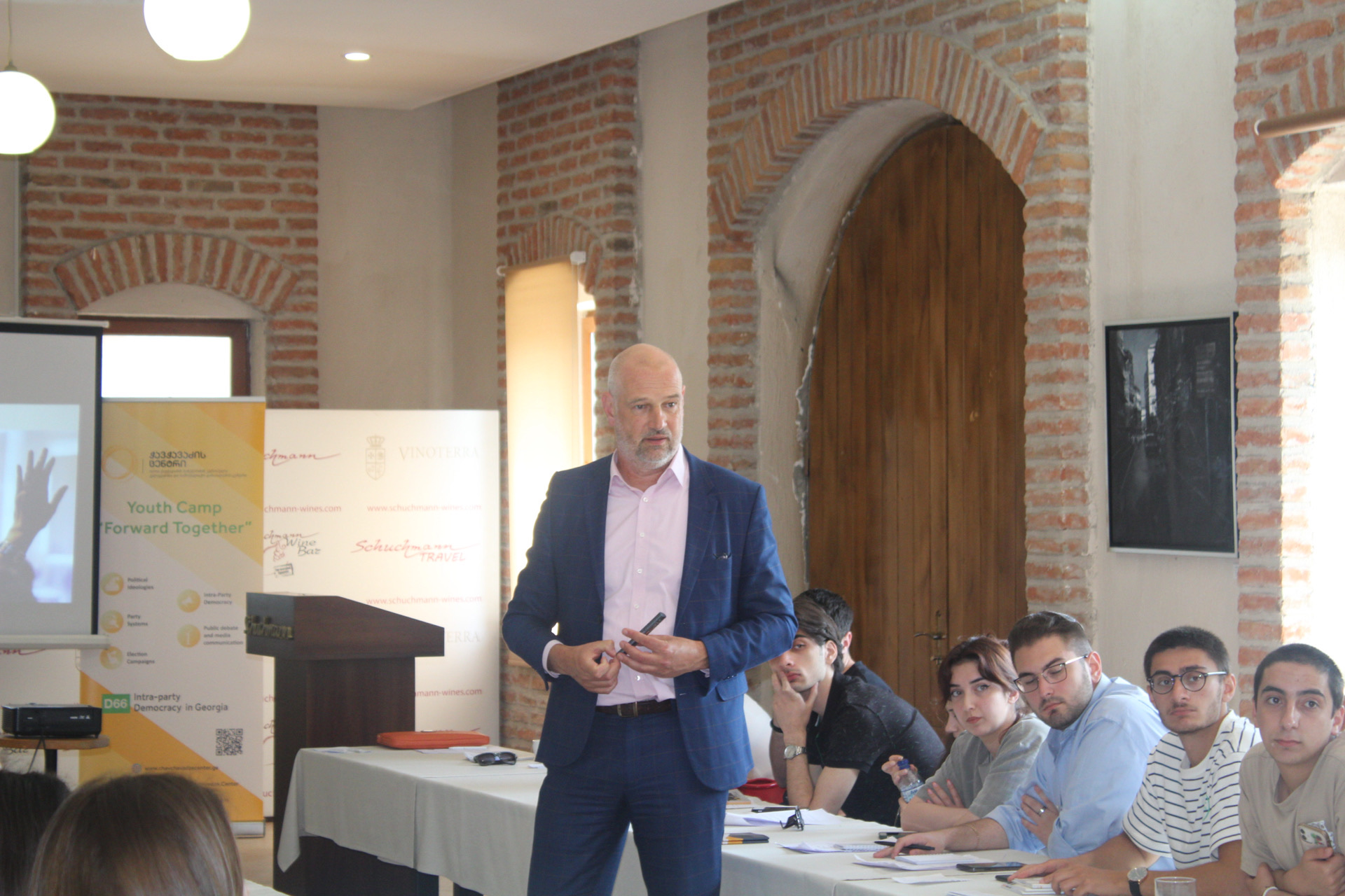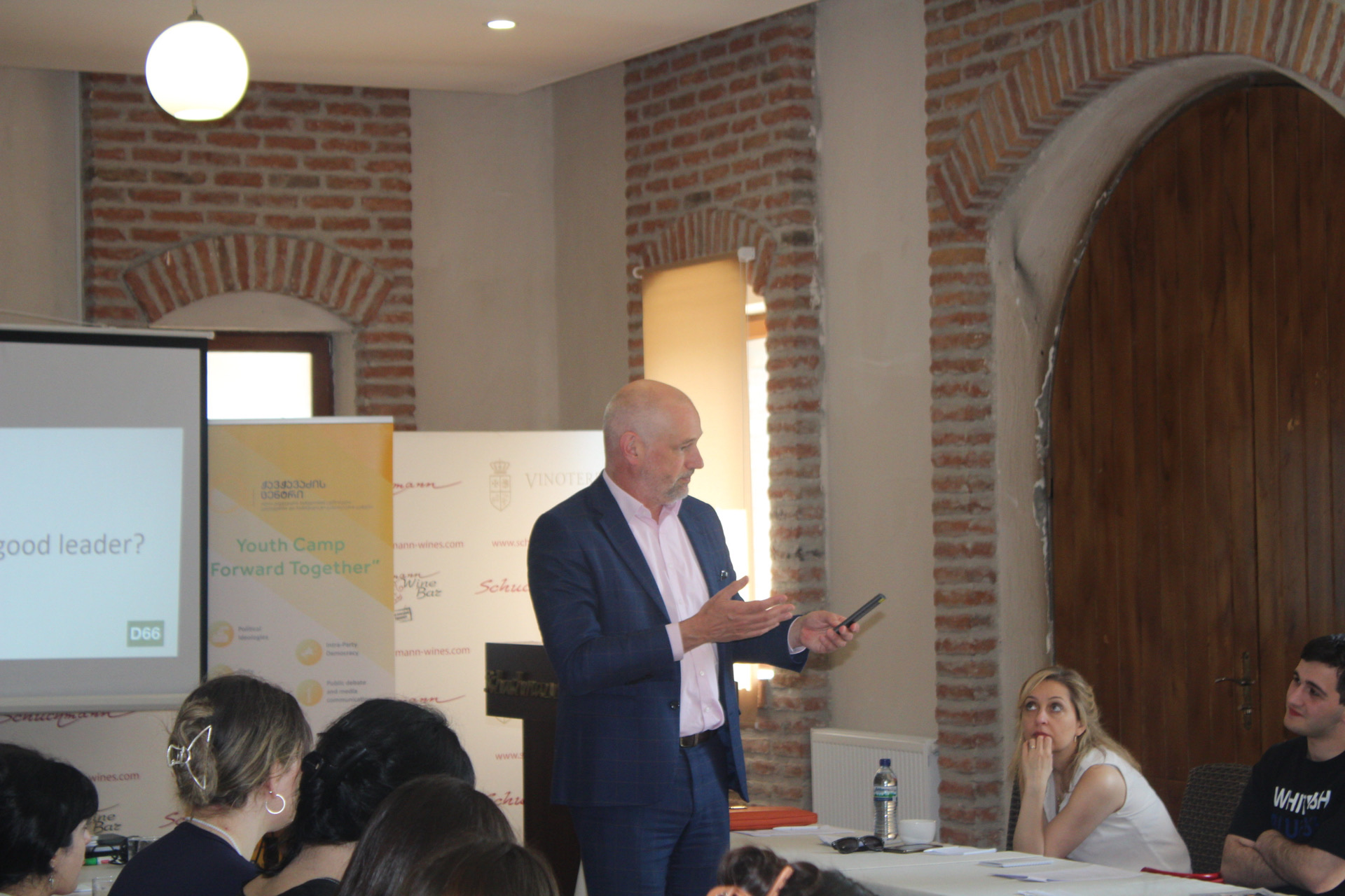 ჭავჭავაძის ცენტრის ახალგაზრდული ბანაკის მესამე დღეს, დასკვნითი სესია გაიმართა ლიდერობისა და პოლიტიკის შესახებ, რომელსაც გაუძღვა ჰოლანდიური პარტია D66-ის თავჯდომარე, ვიქტორ ევერჰარდტი.