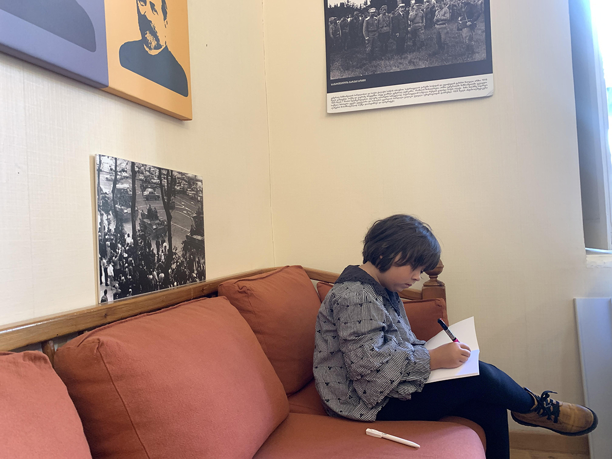 განმარტებითი ლექსიკონის შედგენა დავიწყეთ. ყველა სიტყვა, რომლის მნიშვნელობა არ ვიცოდით, ჩამოვწერეთ, გვერდით ტირეები დავუსვით და სათითაოდ ავხსენით. "აჭარხლებული" თურმე "აწითლებულს" ნიშნავს, "დაუტატანა" - "გაუწყრა"-ს", "დატუქსა"-ს", ხოლო "იხტიბარს არ იტეხდა" - "არ იმჩნევდა"-ს.