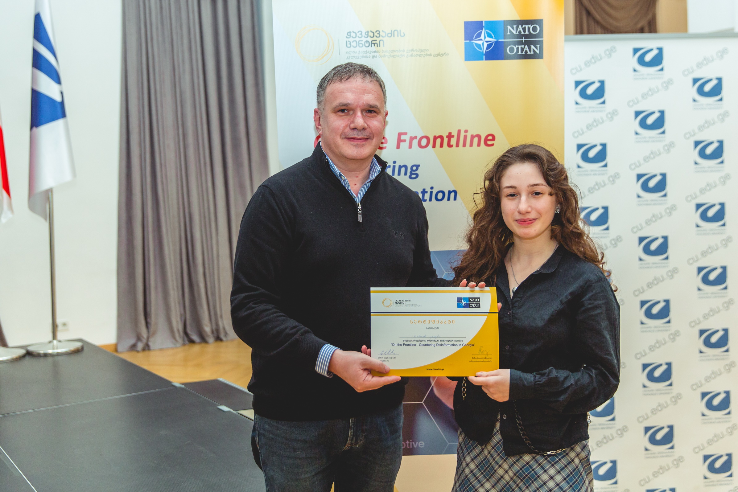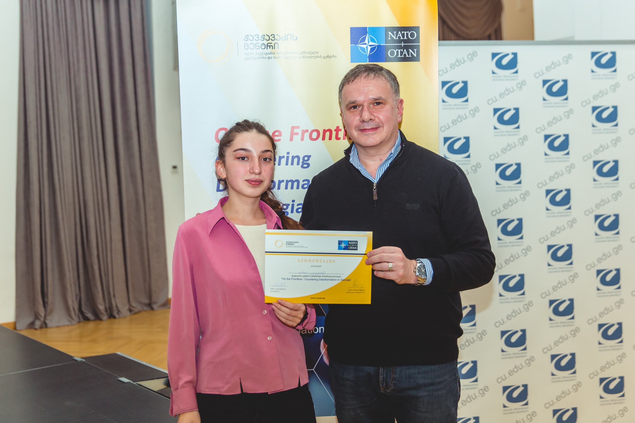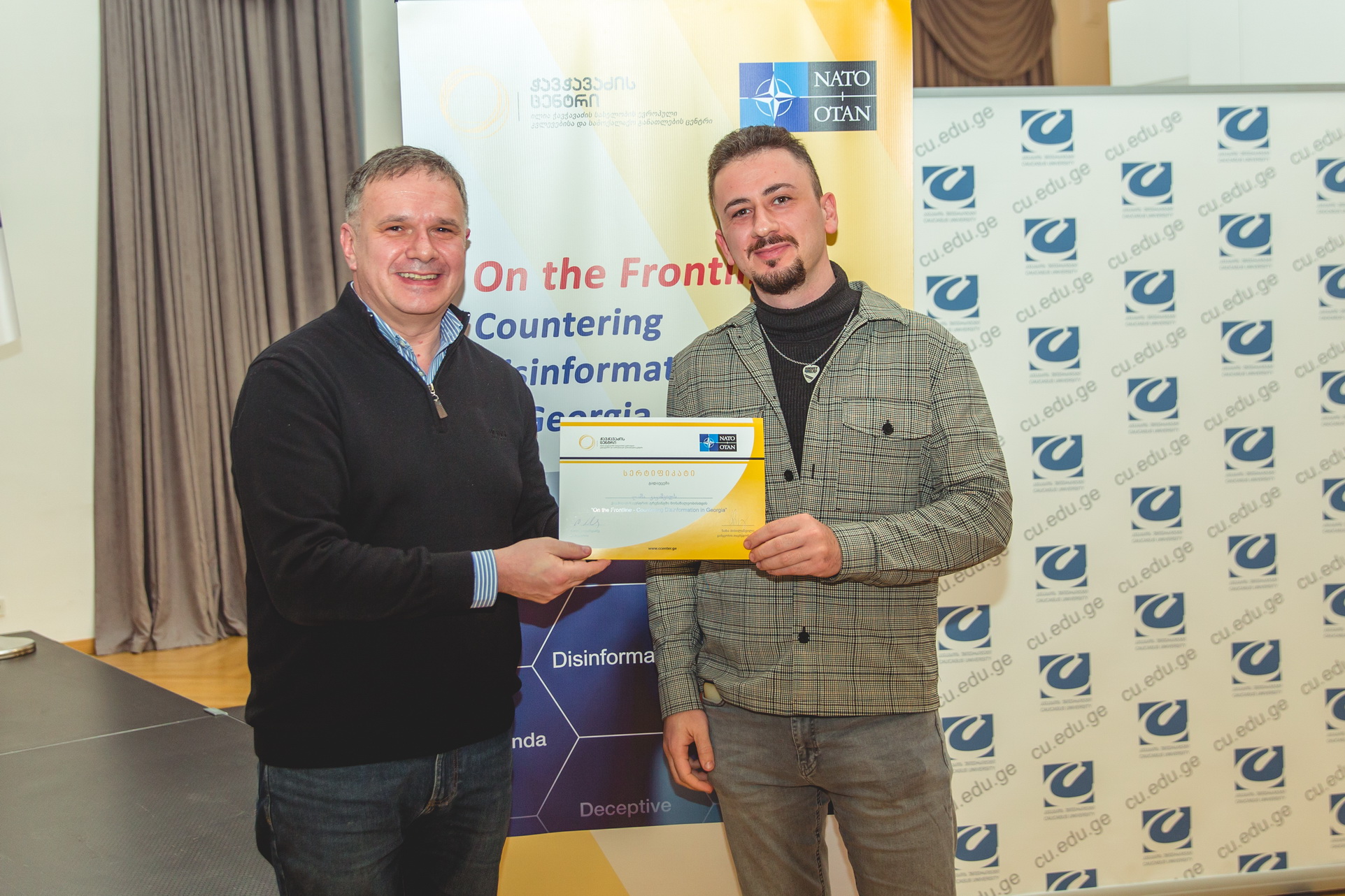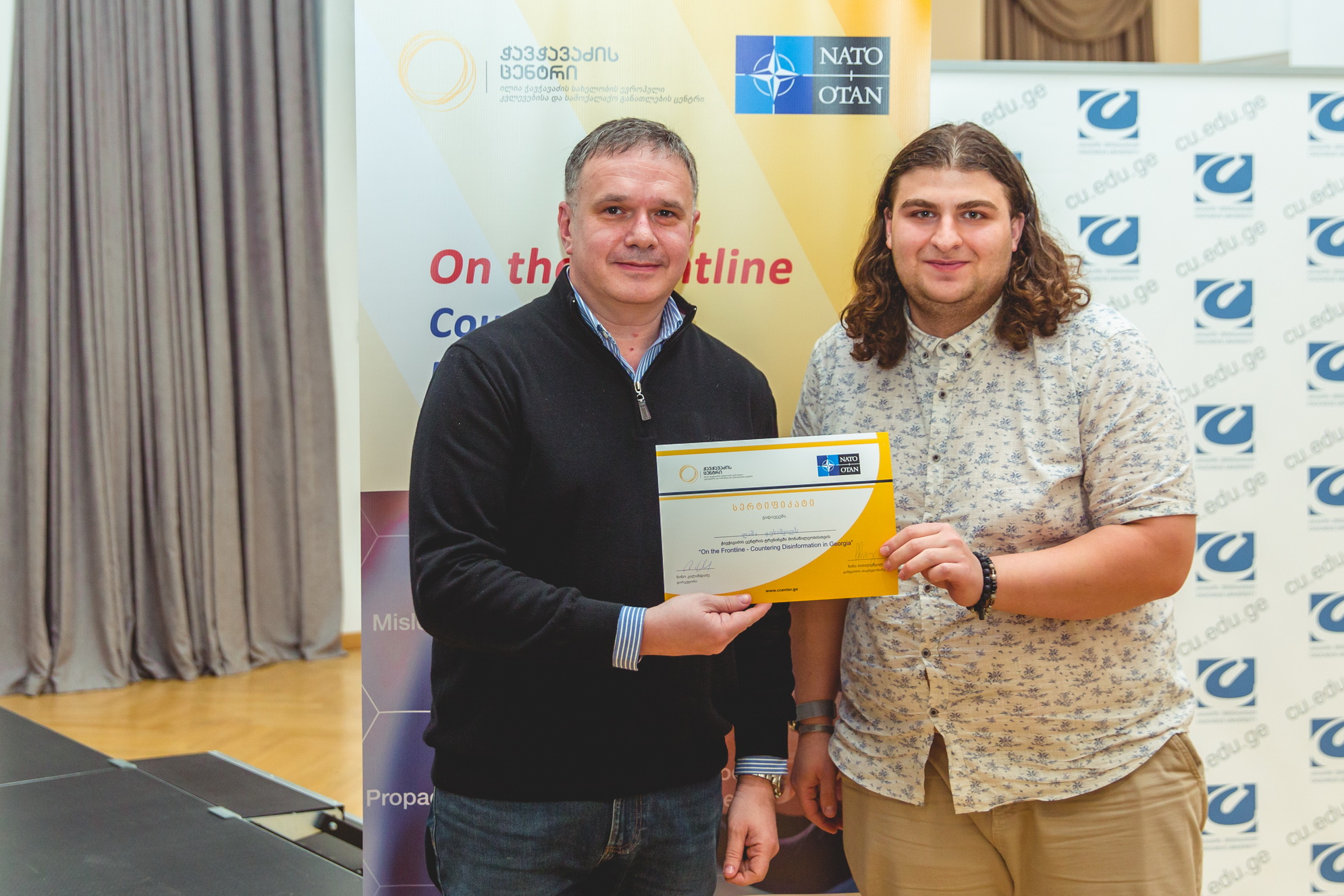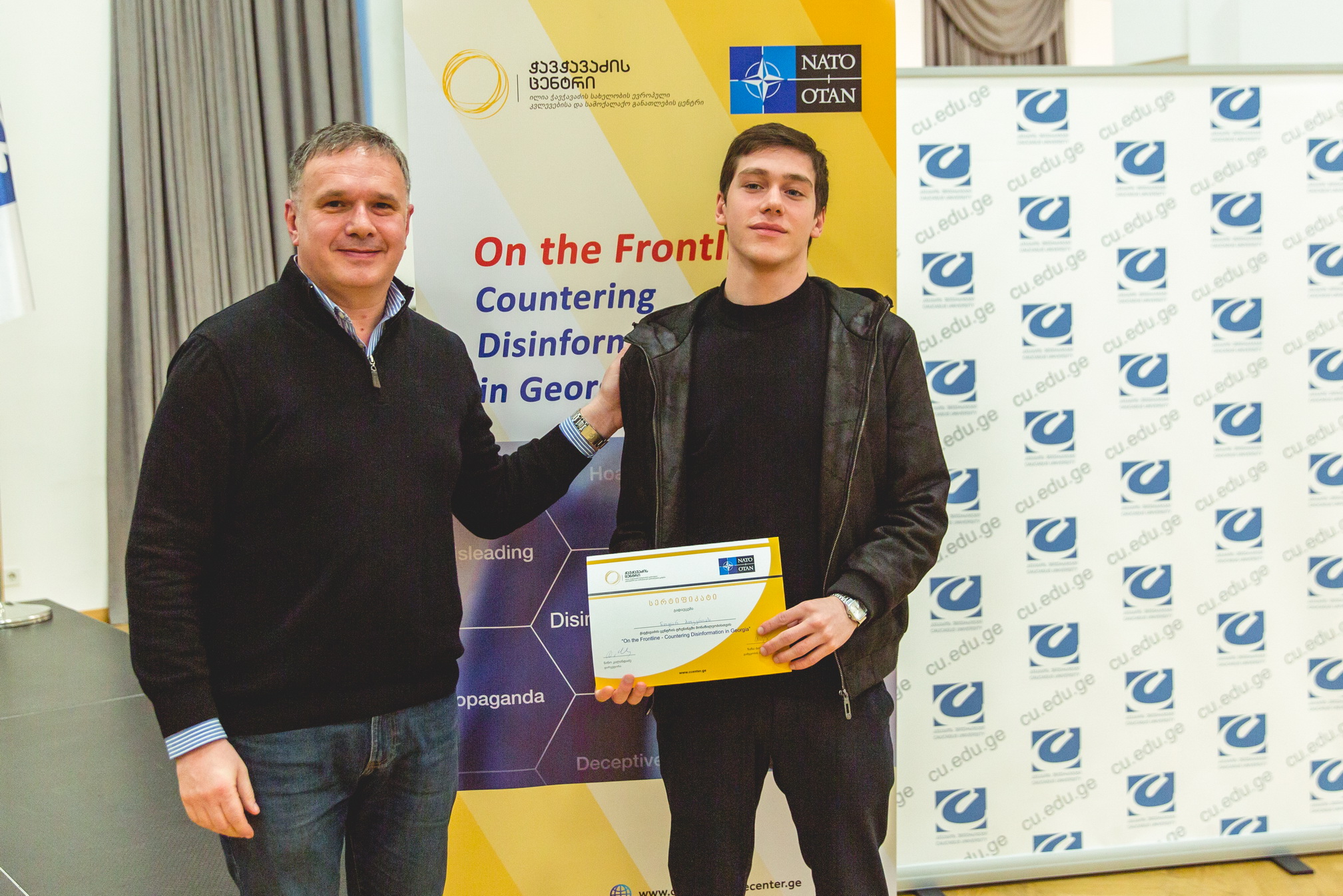 და NATO-ს სახალხო დიპლომატიის განყოფილების მხარდაჭერით, კავკასიის უნივერსიტეტი - Caucasus University-ში გაიმართა ჭავჭავაძის ცენტრის პროექტის „წინა ხაზზე - დავამარცხოთ დეზინფორმაცია საქართველოში“ შემაჯამებელი ღონისძიება. პროექტი სამ ეტაპად განხორციელდა და მასში სხვადასხვა ასაკის 80-მდე ადამიანმა მიიღო მონაწილეობა. ტრენინგებისას ცენტრის მკვლევარები და მოწვეული ექსპერტები მონაწილეებს ესაუბრნენ დეზინფორმაციის ამოცნობასა და მასთან ეფექტიანი ბრძოლის მეთოდებზე. მონაწილეებს გადაეცათ ცენტრის მიერ საგანგებოდ ამ პროექტისთვის გამოცემული პროპაგანდასთან ბრძოლის პრაქტიკული გზამკვლევი.