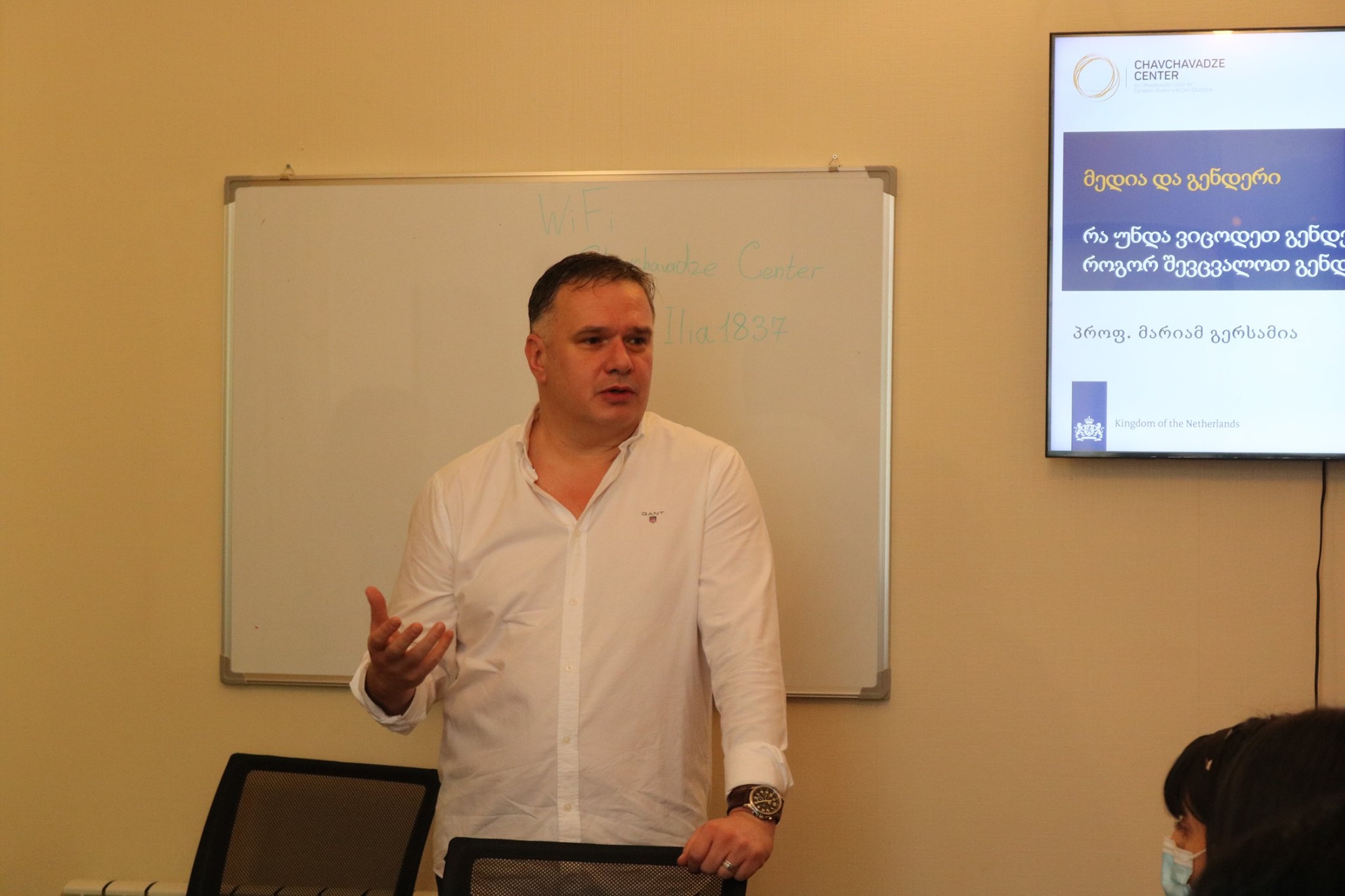 ტრენინგი გახსნა ჭავჭავაძის ცენტრის დამფუძნებელმა ზაზა ბიბილაშვილმა და ისაუბრა სამოქალაქო საზოგადოების პასუხისმგებლობასა და მედიის როლზე სტერეოტიპების შეცვლის პროცესში.