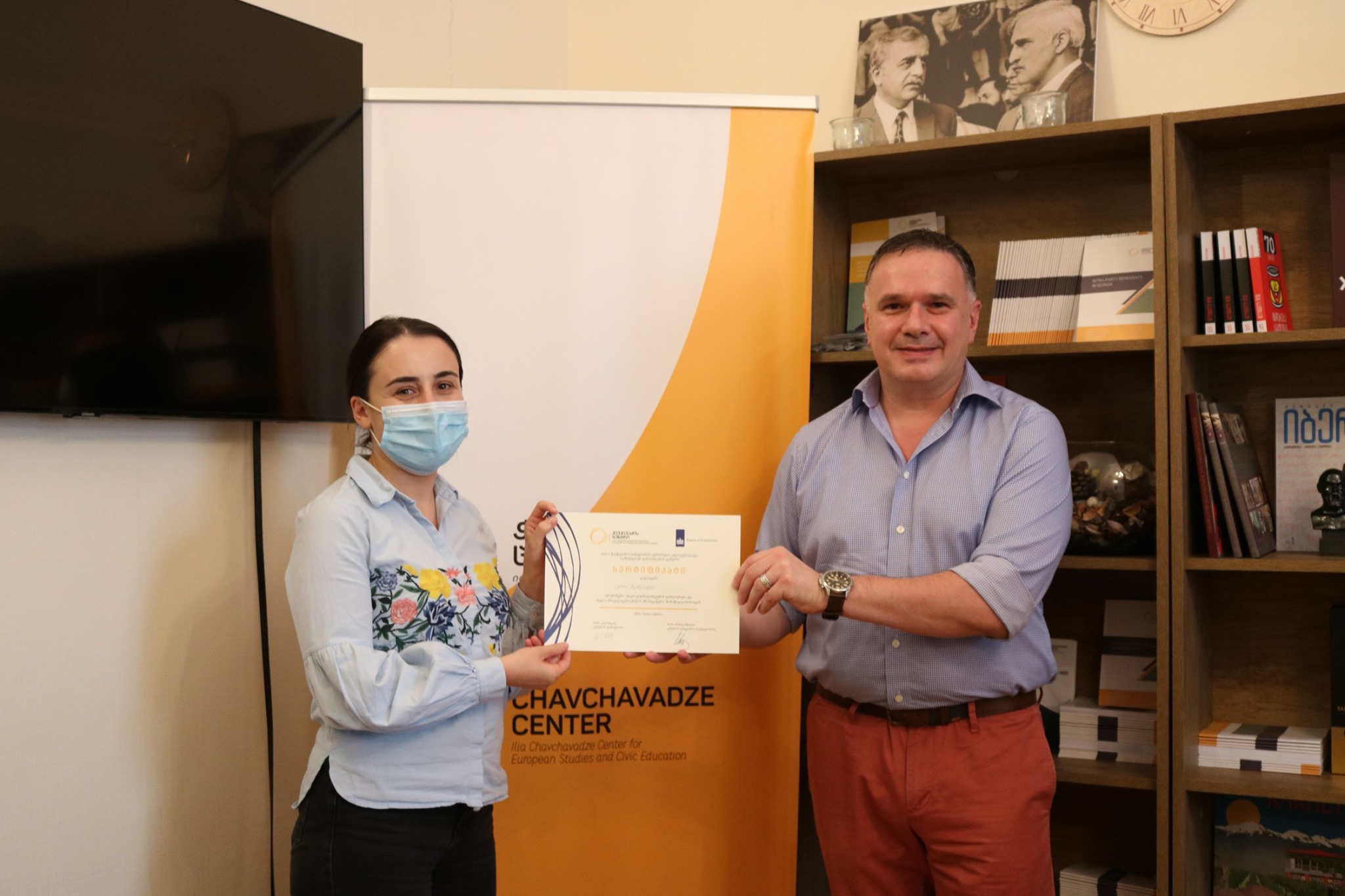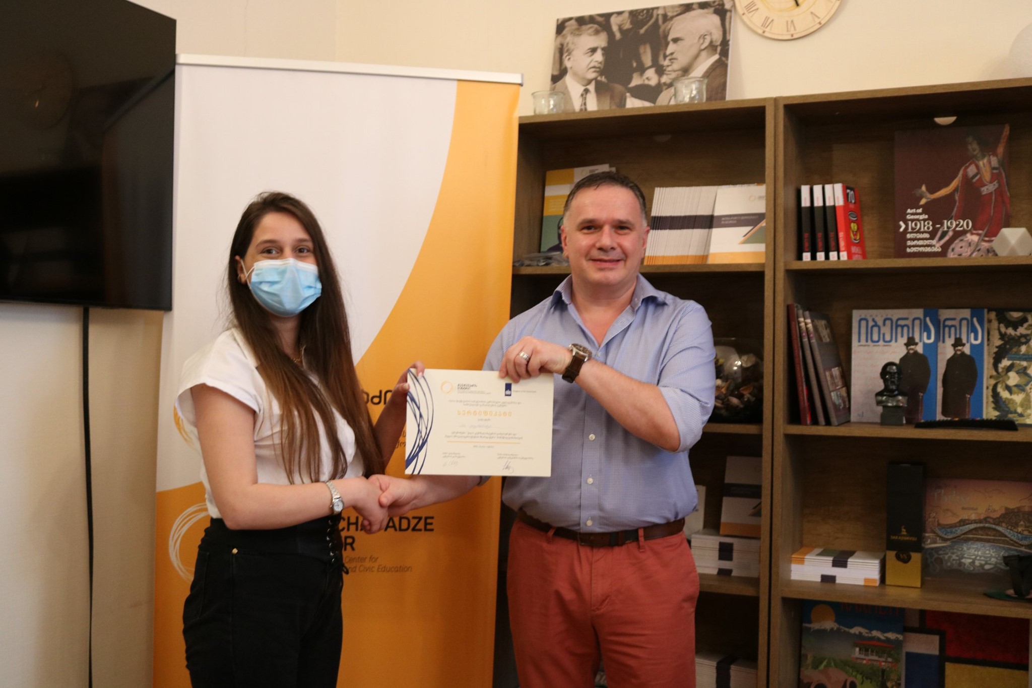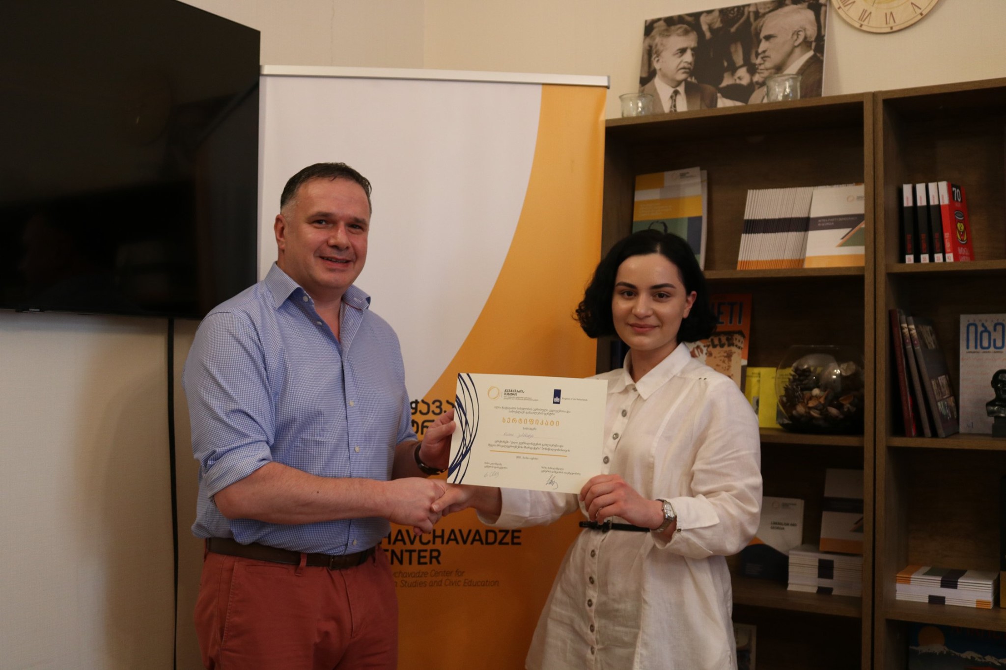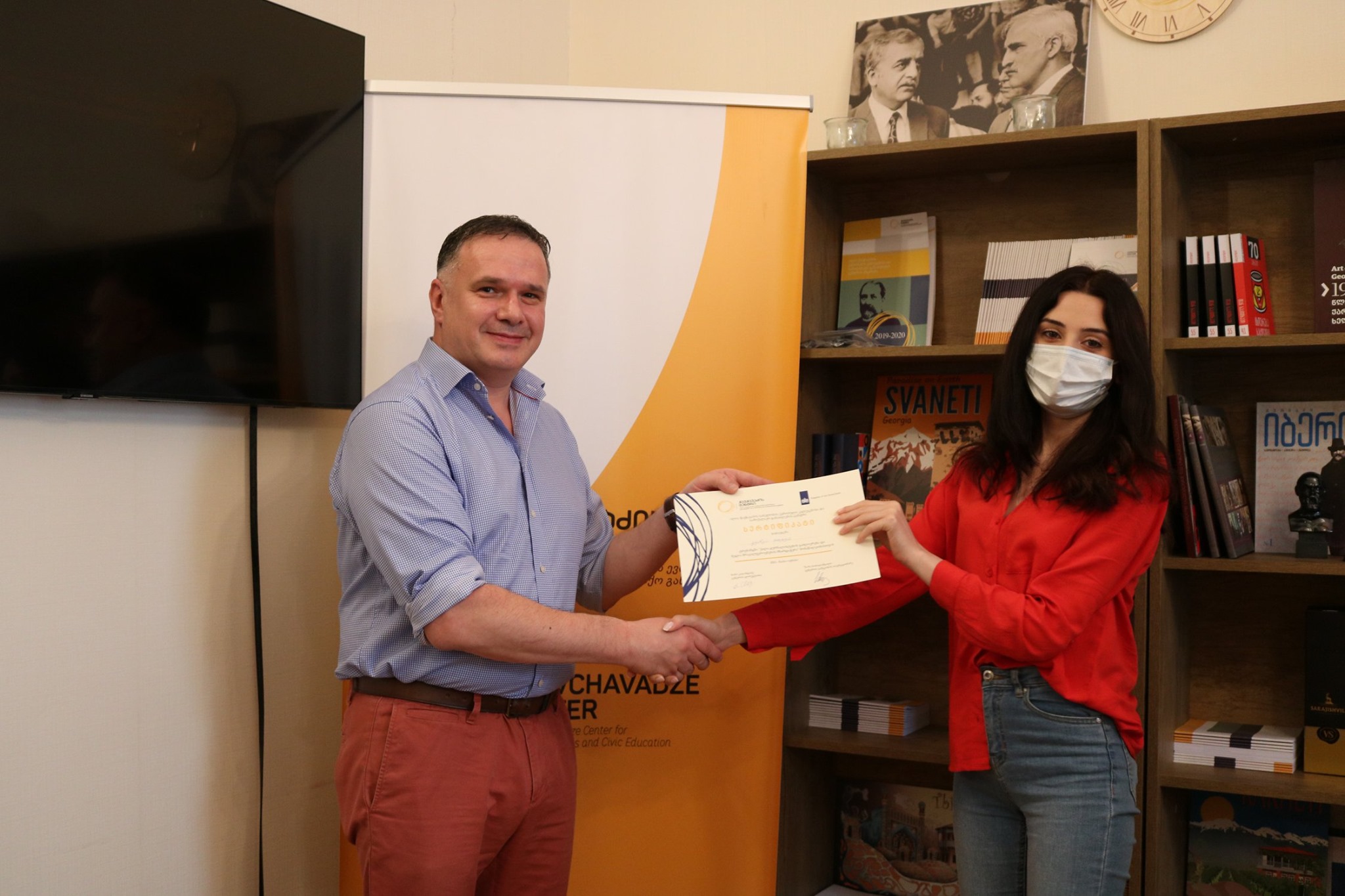 ორდღიანი ტრენინგის ბოლოს მონაწილეებს ჭავჭავაძის ცენტრის დამფუძნებელმა ზაზა ბიბილაშვილმა და ცენტრის დირექტორმა ნინო კალანდაძემ სერტიფიკატები გადასცეს.