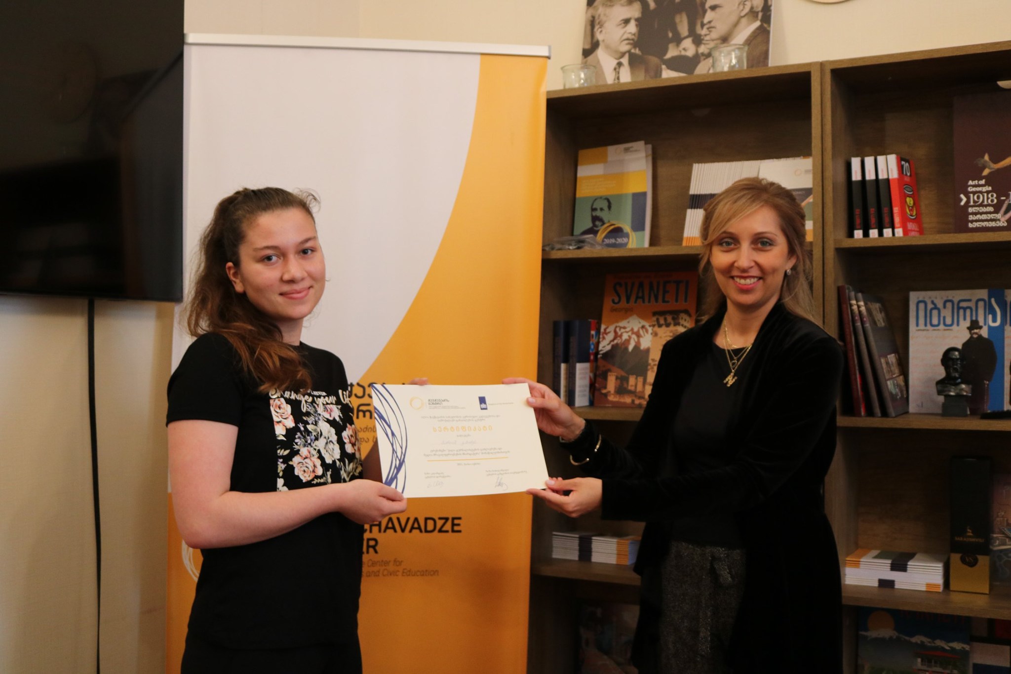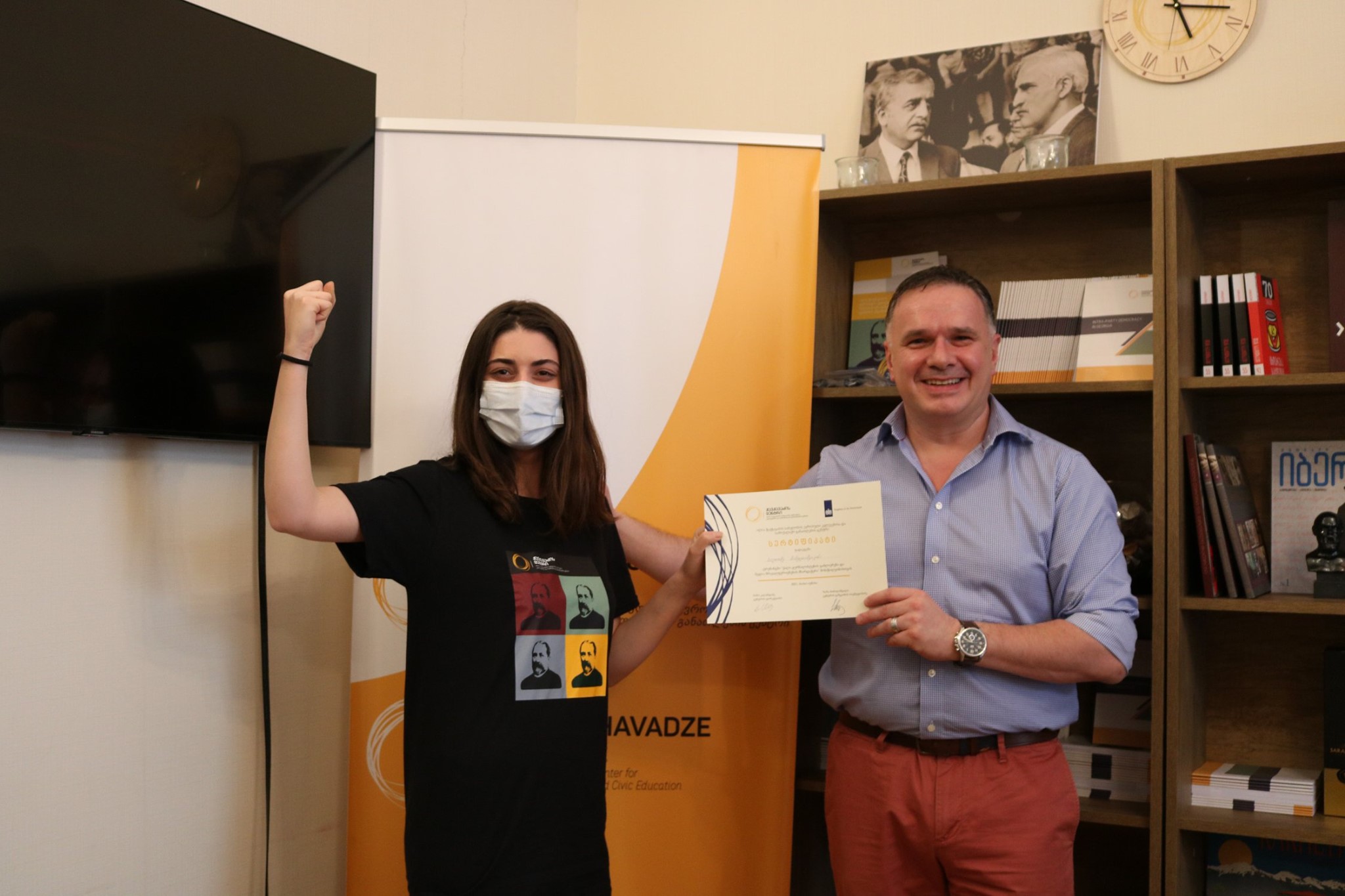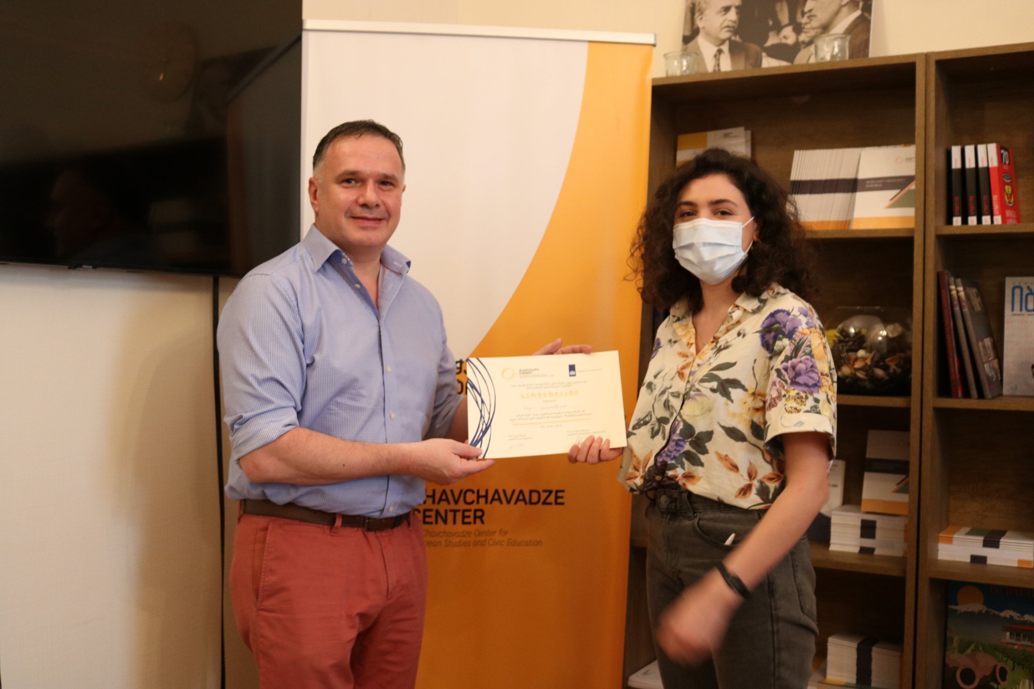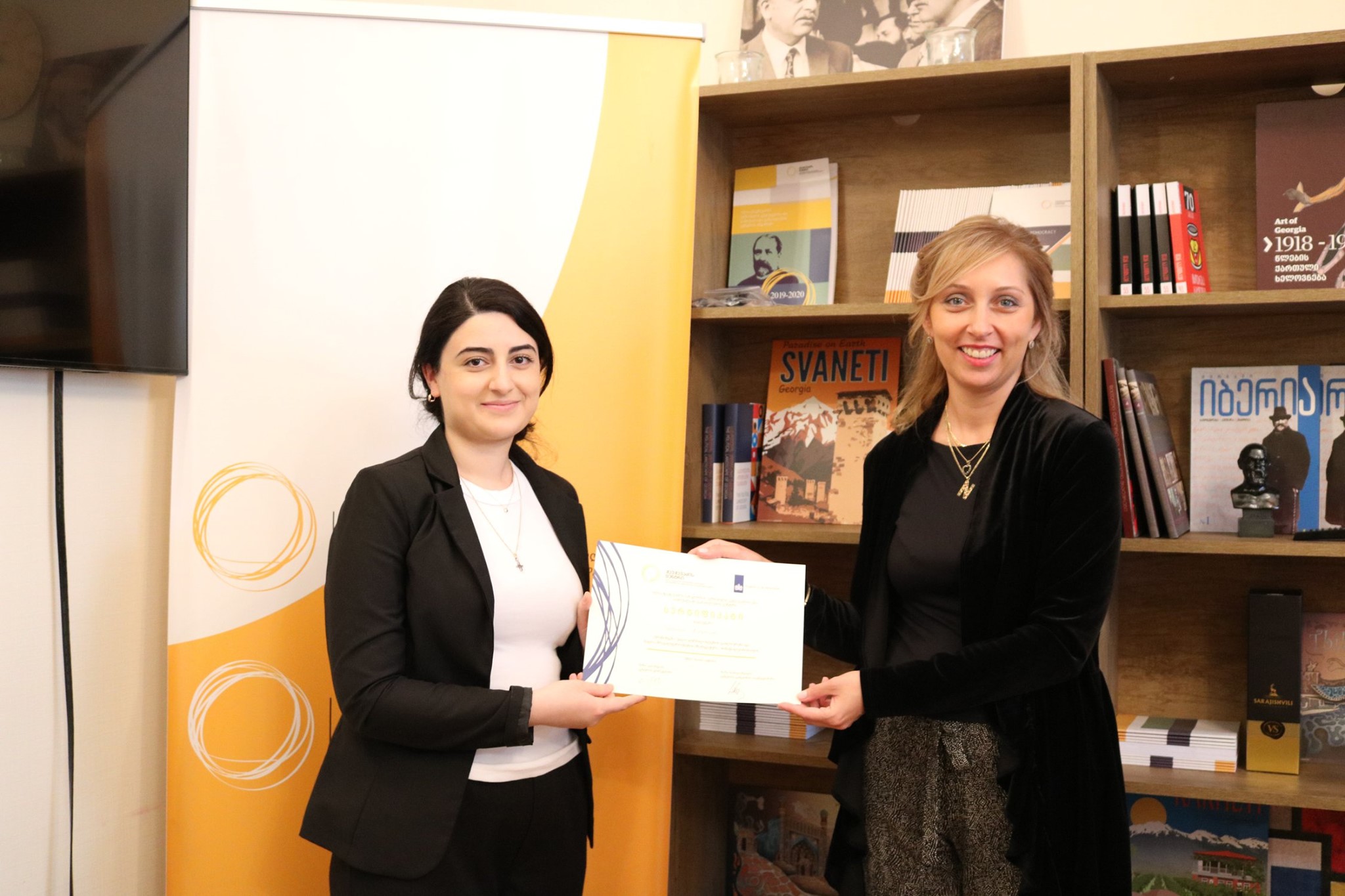 ორდღიანი ტრენინგის ბოლოს მონაწილეებს ჭავჭავაძის ცენტრის დამფუძნებელმა ზაზა ბიბილაშვილმა და ცენტრის დირექტორმა ნინო კალანდაძემ სერტიფიკატები გადასცეს.