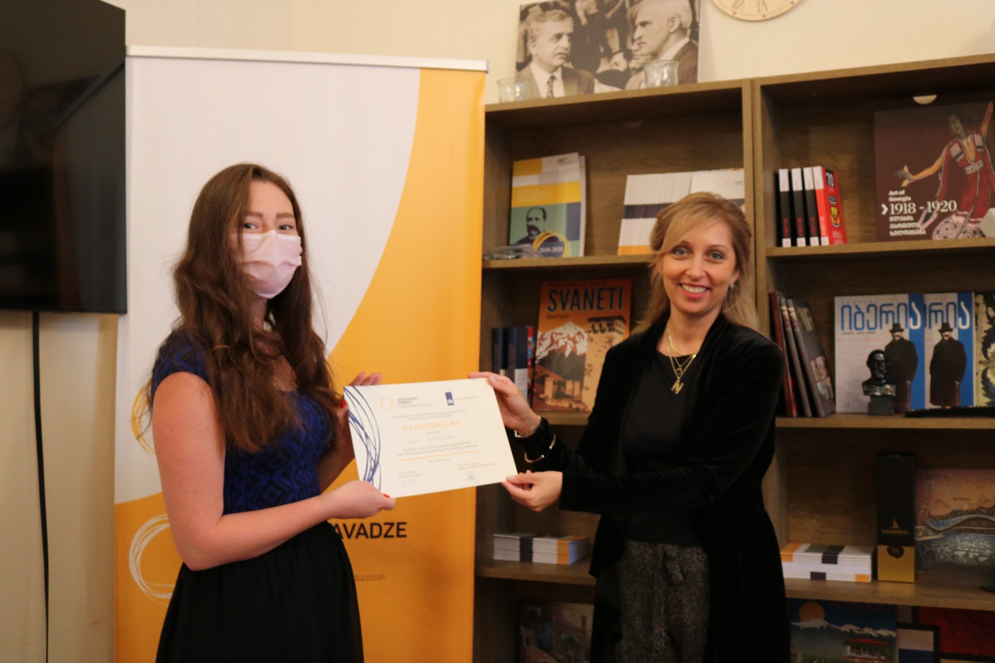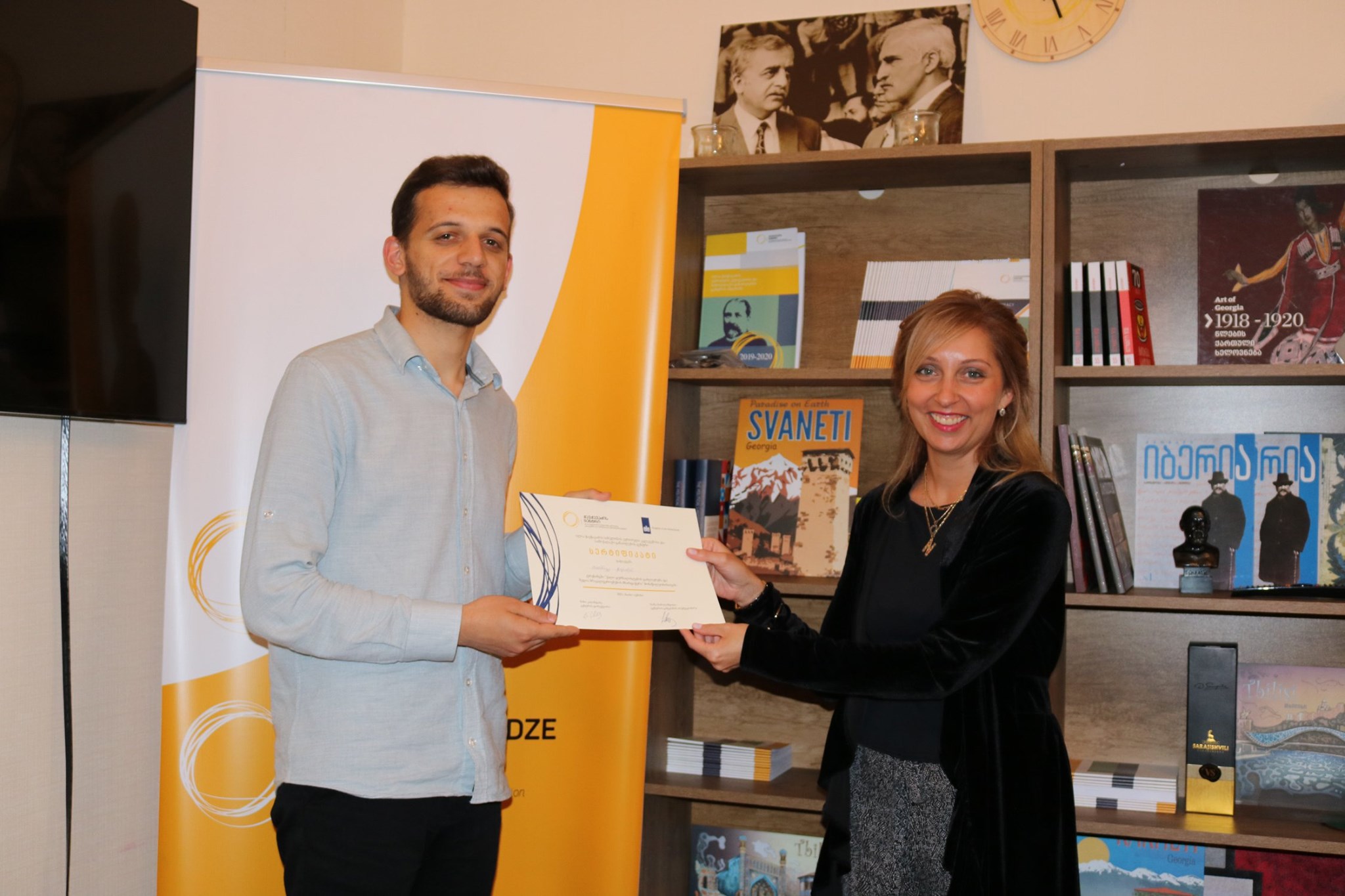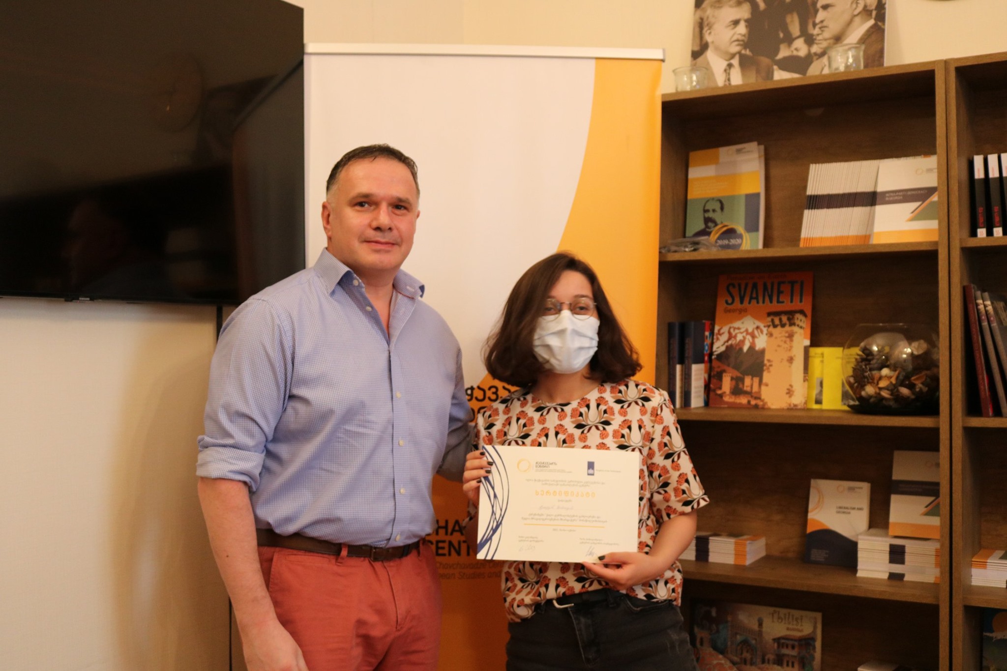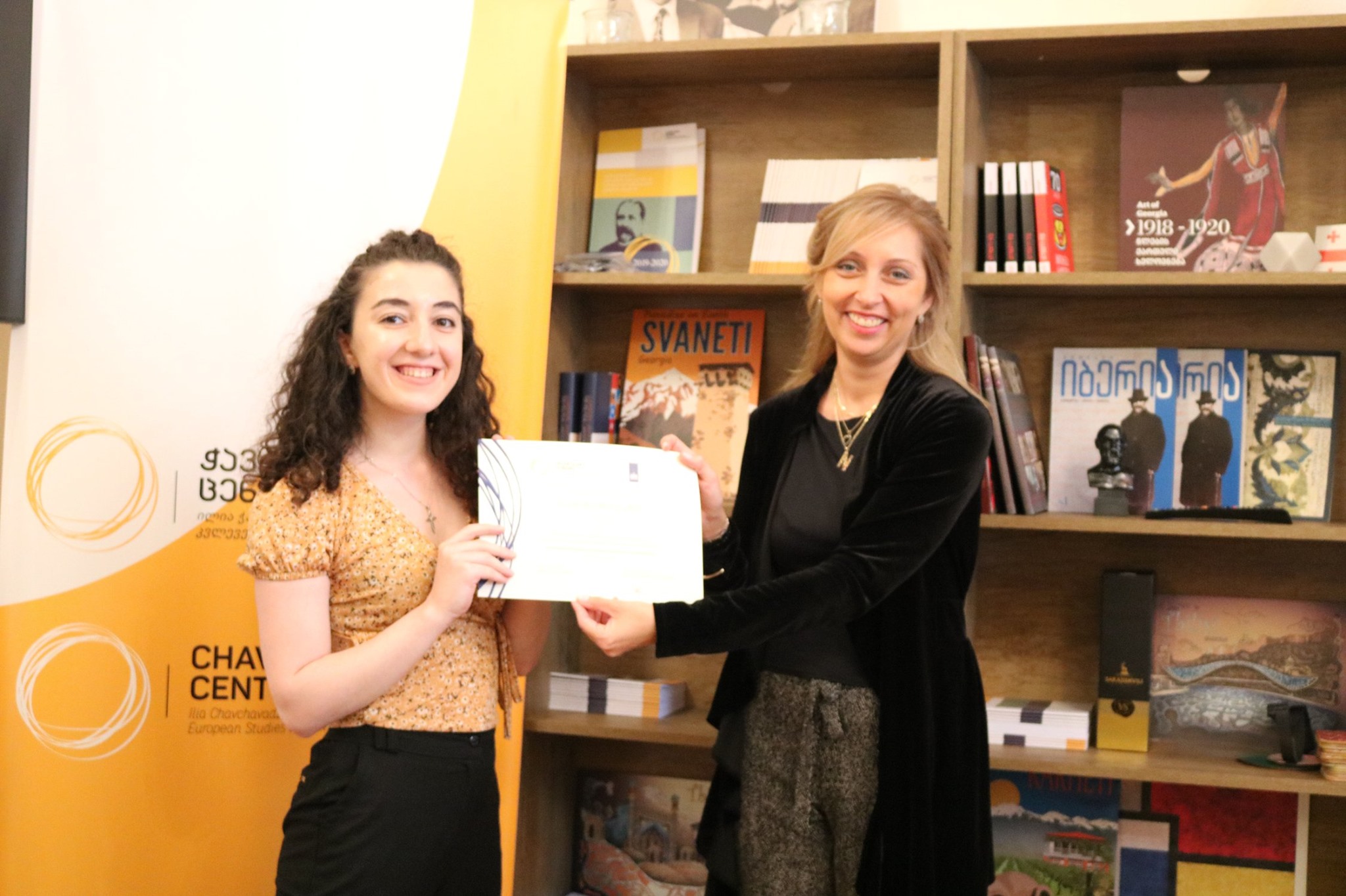 ორდღიანი ტრენინგის ბოლოს მონაწილეებს ჭავჭავაძის ცენტრის დამფუძნებელმა ზაზა ბიბილაშვილმა და ცენტრის დირექტორმა ნინო კალანდაძემ სერტიფიკატები გადასცეს.