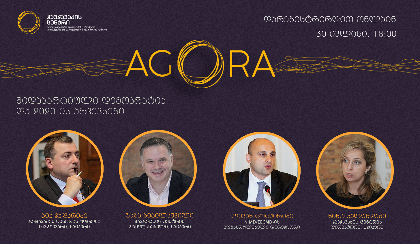 29 ივლისს ჭავჭავაძის ცენტრში ჩატარდა „AGORA - სადისკუსიო ონლაინ-კლუბის“ შეხვედრები, რომელსაც საქართველოს სხვადასხვა რეგიონიდან 35-ზე მეტი მონაწილე დაესწრო.